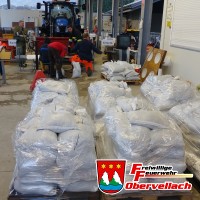 Nachdem die Niederschlagsmengen erwartungsgemäß wieder stark angestiegen waren, begann die FF-Obervellach zu Mittag mit den Vorbereitungen auf das zu erwartende hundertjährige Hochwasser der Möll. Zunächst wurden einige hundert Sandsäcke gefüllt und auf Paletten geschlichtet. Die Paletten wurden auf mehreren Anhängern verladen um im Bedarfsfall rasch verfügbar zu sein. Aus Sicherheitsgründen wurden die Söbriacher, Räuflacher und Gratschacher Brücken gesperrt.