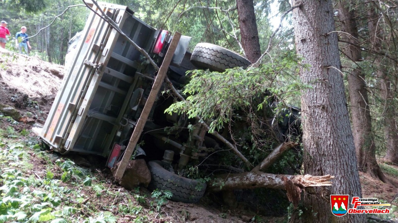Gegen Mittag kam ein LKW Lenker mit seinem Schwerfahrzeug am Güterweg Ronealm seitlich von der Fahrbahn ab, und stürzte seitlich ca. 8m über eine Böschung in den Wald, wo das Fahrzeug seitlich zu liegen kam. Der verletzte Lenker konnte sich selbst aus der Fahrerkabine befreien und sich zu Fuß zum nächsten Haus schleppen, von wo aus die Rettungskräfte alarmiert wurden. Der Lenker wurde mit dem Hubschrauber RK1 ins LKH Klagenfurt gebracht. Aufgrund der austretenden Betriebsmittel wurde von der FF-Rangersdorf das GSF-A Obervellach zum auffangen der Betriebsmittel angefordert.